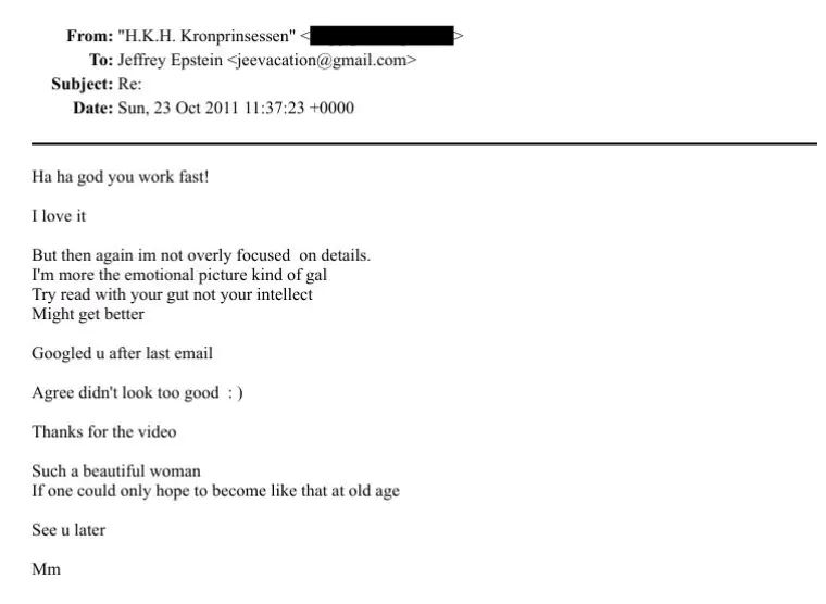 Norway’s Crown Princess Mette-Marit to Epstein: “You always make me smile… Because you tickle my brain.”