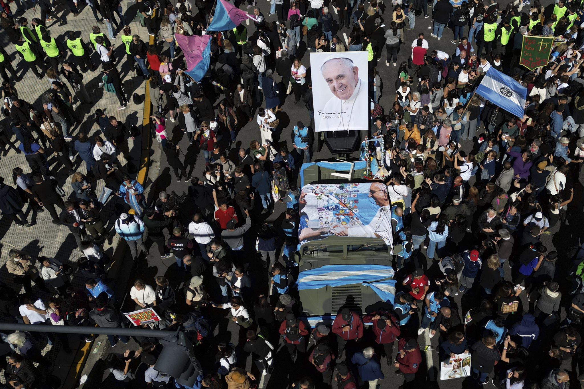 Στην Πλατεία Μαΐου, ο σημερινός αρχιεπίσκοπος του Μπουένος Άιρες, Χόρχε Γκαρσία Κουέρβα, απηύθυνε λόγο μπροστά σε πλήθος πιστών που κρατούσαν φωτογραφίες του Φραγκίσκου, λευκά λουλούδια και σημαίες της Αργεντινής. «Δεν μπορούμε ακόμη να κατανοήσουμε πλήρως ή να αντιληφθούμε τον ηγετικό του ρόλο παγκοσμίως. Θρηνούμε επειδή μας λείπει ήδη τόσο πολύ», είπε ο Κουέρβα, προσθέτοντας: «Θρηνούμε για τον Φραγκίσκο, από τα βάθη της καρδιάς μας, χωρίς να ντρεπόμαστε για αυτό».