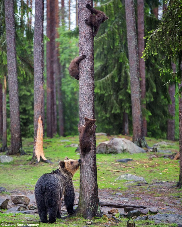 Τα τρία άτακτα αρκουδάκια έβαλαν σε μπελάδες τη μαμά τους όταν άρχισαν να συναγωνίζονται το ένα το άλλο για το ποιο θα ανέβει πιο ψηλά σε ένα δέντρο.