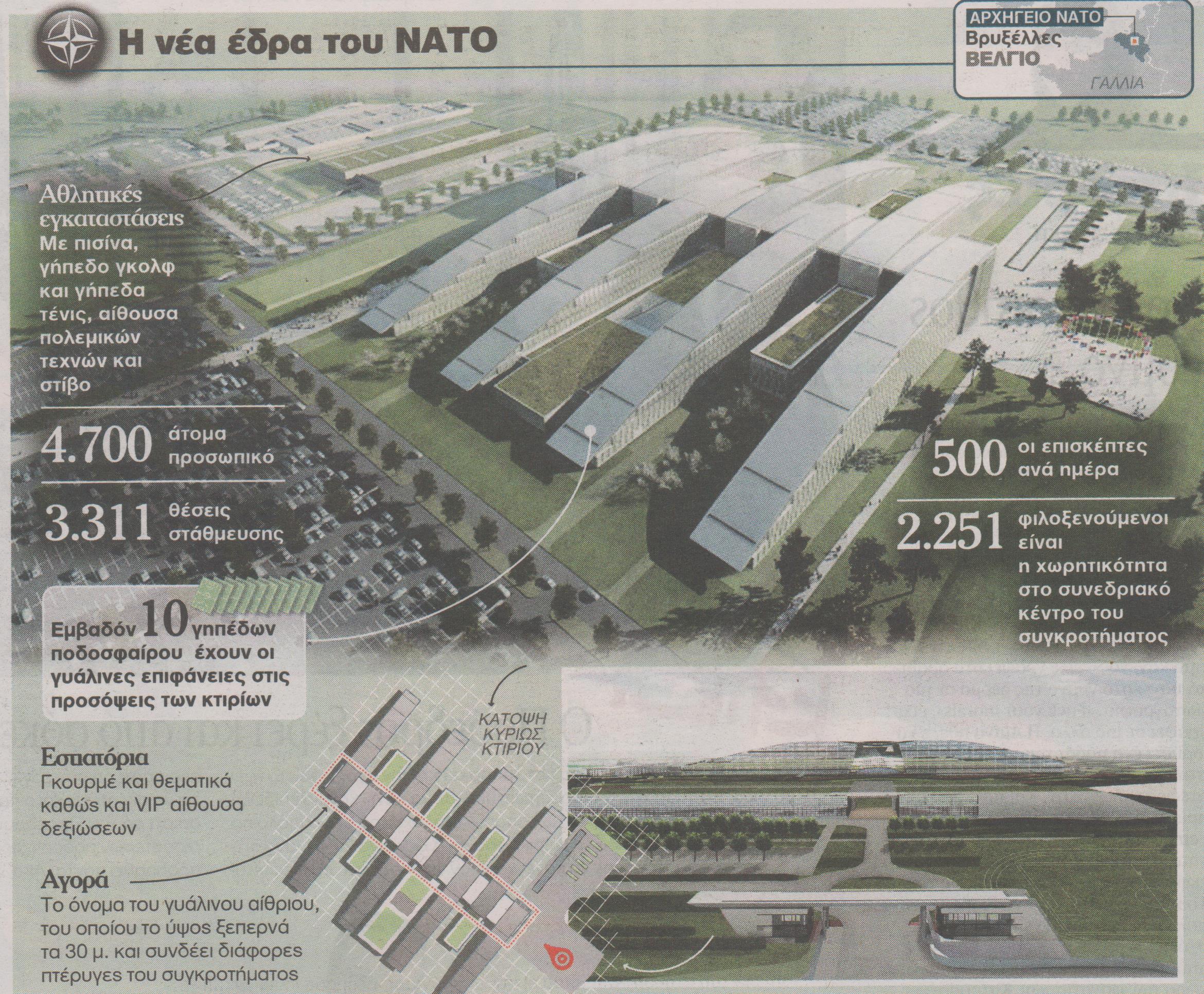Η ανέγερσή του αναμένεται να ολοκληρωθεί το 2015 και το κόστος του θα ξεπεράσει το ένα δισεκατομμύριο ευρώ. Το νέο αρχηγείο του ΝΑΤΟ – θα βρίσκεται στα περίχωρα των Βρυξελλών – πρόκειται να ξεχωρίζει για τις εξαιρετικές του εγκαταστάσεις οι οποίες θα είναι εφάμιλλες με εκείνες των πιο υπερπολυτελών ξενοδοχείων.