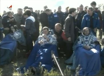 Με ασφάλεια επέστρεψαν στη Γη, νωρίς το πρωί της Τρίτης, (ώρα Καζακστάν) μετά από 146 ημέρες στον Διεθνή Διαστημικό Σταθμό, οι τρεις αστροναύτες, ένας Καναδός, ένας Ρώσος και ένας Αμερικανός, ανακοίνωσε το ρωσικό κέντρο ελέγχου διαστημικών πτήσεων (TSOUP).