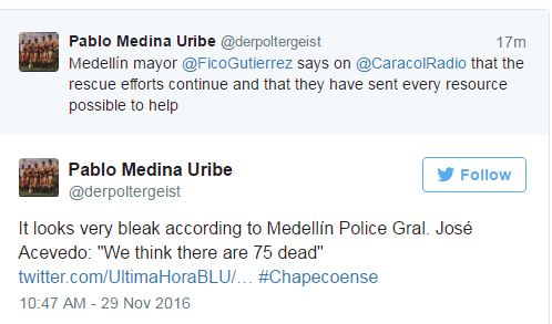 Δυσάρεστες είναι οι τελευταίες πληροφορίες που μεταδίδουν τα τοπικά μέσα της Κολομβίας για την αεροπορική τραγωδία.