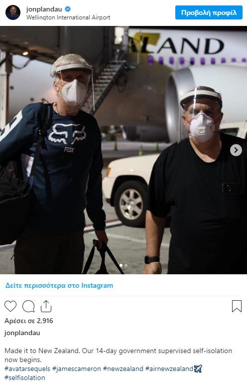 Φορώντας προστατευτική μάσκα προσώπου ο κινηματογραφικός παραγωγός επιβεβαίωσε ότι θα απομονωθούν για 14 ημέρες προτού ξεκινήσουν τα γυρίσματα. «Έφτασα στη Νέα Ζηλανδία. Η 14 ημερών εποπτευόμενη αυτο-απομόνωση από τις αρχές της χώρας ξεκινά» έγραψε ο Λαντάου.