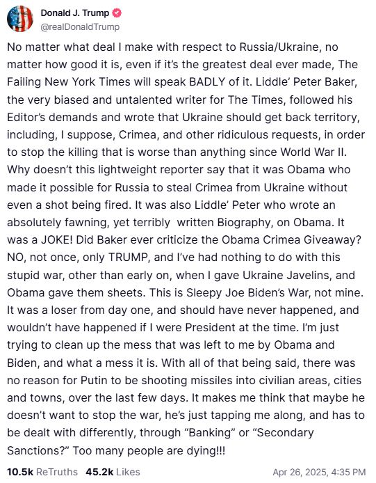 Η ανάρτηση-μήνυμα του Τραμπ προς τον Πούτιν