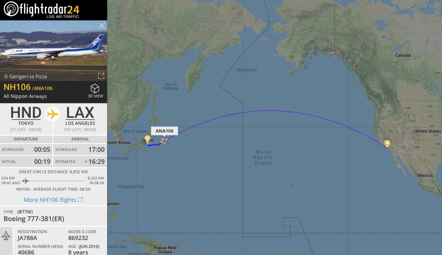 Σκηνές από την ταινία «Back to the Future» βιώνουν οι επιβάτες της πτήσης NH106. Και αυτό διότι απογειώθηκαν το… 2019 από το Τόκιο και θα προσγειωθούν στο αεροδρόμιο του Λος Άντζελες το… 2018.Όπως φαίνεται και στην εικόνα από το flightradar24 το αεροπλάνο απογειώθηκε από το αεροδρόμιο του Τόκιο λίγα λεπτά μετά την αλλαγή του χρόνου και θα φτάσει στην πόλη των ΗΠΑ το απόγευμα της 31ης Δεκεμβρίου του 2018. Δείτε τη φωτογραφία