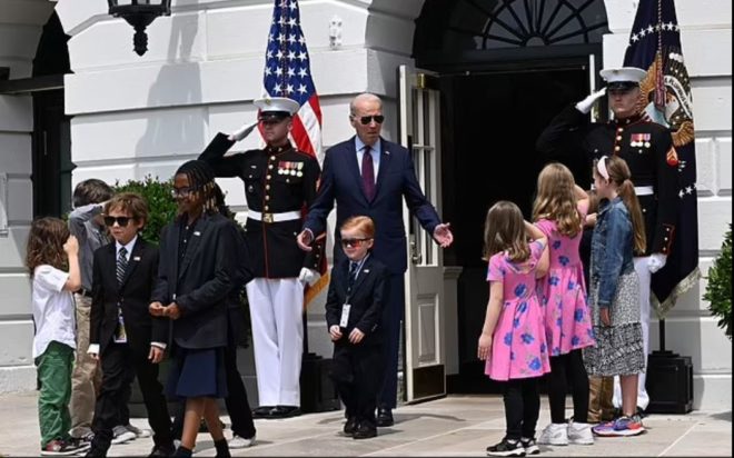 Μετά από περισσότερα από 20 λεπτά, ένα παιδί έκανε μια ερώτηση που φαινόταν να του την έχουν πει οι γονείς του. «Κύριε Πρόεδρε, άκουσα ότι πρέπει να επιστρέψετε στο Οβάλ Γραφείο», του είπε. Οι βοηθοί του ανακουφίστηκαν. Το μαρτύριο θα έφτανε στο τέλος του. Ο Μπάιντεν όμως συνέχισε απτόητος. Άρχισε να περπατάει δίπλα σε ένα παιδί , το οποίο όμως του έκανε μια ερώτηση για την Πολωνία. Η Νίνα Ουαλκούσκα, 10 ετών, κόρη δημοσιογράφου ο οποίος είναι ανταποκριτής σε πολωνικό ραδιοφωνικό σταθμό, ήταν το κορίτσι που έκανε την ερώτηση. Ο πρόεδρος την κάλεσε μαζί με ακόμα ένα παιδί μέσα στο Οβάλ Γραφείο. Εκείνη μπήκε μέσα και όταν βγήκε κρατούσε μπισκότα συσκευασμένα με τη σφραγίδα του Προέδρου των ΗΠΑ. Είπε ότι ο Μπάιντεν της έδειξε φωτογραφίες της οικογένειάς του και της είπε «πολλά σπουδαία πράγματα». Αλλά δεν απάντησε στην ερώτηση για την Πολωνία.
