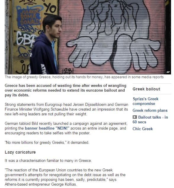 Ο επιχειρηματίας Γιώργος Κόλλιας αναφέρει στο BBC «Η αντίδραση των χωρών της Ευρωπαϊκής Ένωσης στις προσπάθειες της νέας ελληνικής κυβέρνησης για επαναδιαπραγμάτευση για το θέμα του χρέους, καθώς και τις μεταρρυθμίσεις που προτείνει σήμερα υπήρξε, δυστυχώς, προβλέψιμη».