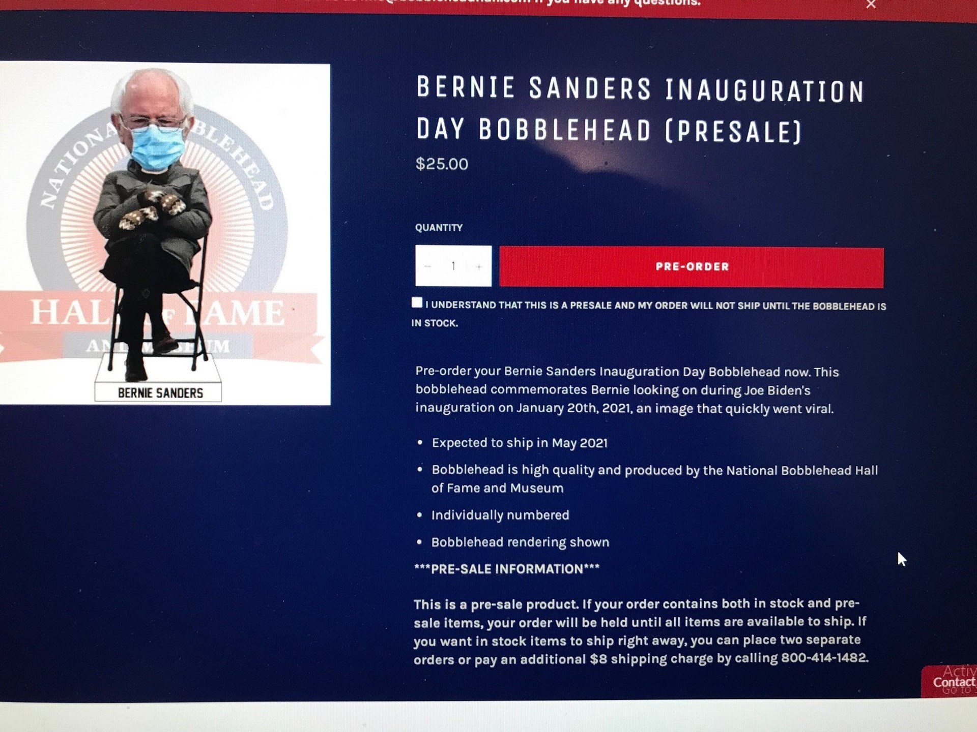 Η φωτογραφία του γερουσιαστή Μπέρνι Σάντερς, καθισμένου σταυροπόδι, φορώντας υπερμεγέθη γάντια από ανακυκλωμένα υλικά και ζεστό χειμωνιάτικο μπουφάν, είναι ένας από τους λόγους που η τελετή ορκωμοσίας του Τζο Μπάιντεν χαράχτηκε στη μνήμη αρκετών. Έκτοτε αναπαράγεται σε διάφορες εκδοχές και αυτή τη φορά έγινε “bobblehead (κουκλάκι με κινητό κεφάλι)”.