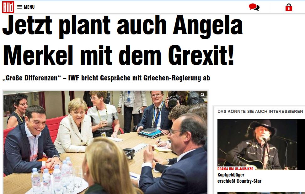 Δύο ώρες διαπραγματεύθηκε η Γερμανίδα Καγκελάριος στις Βρυξέλλες με τον Γάλλο πρόεδρο Φρανσουά Ολάντ και τον Έλληνα πρωθυπουργός Αλέξης Τσίπρας και μόλις ολοκληρώθηκε ήταν σαφές πως η ελληνική χρεοκοπία είναι πλέον ασταμάτηση καθώς και οι δύο πλευρές μιλούν ανοιχτά για Grexit.