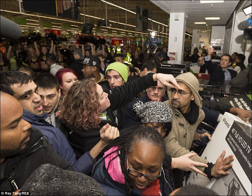 Η Παρασκευή των εκπτώσεων, προκάλεσε πανικό και αναστάτωση στα μεγάλα εμπορικά καταστήματα της Βρετανίας, καθώς χιλιάδες άνθρωποι έσπευσαν να εκμεταλλευτούν τις μεγάλες προσφορές της ημέρας. Σύμφωνα με την ηλεκτρονική έκδοση της Daily Mail το χάος που επικρατούσε στα εμπορικά πολυκαταστήματα λόγω Black Friday, είχε σαν αποτέλεσμα να υπάρξουν και παρεξηγήσεις ανάμεσα στους καταναλωτές, ενώ σε αρκετές περιπτώσεις χρειάστηκε και η συμβολή της αστυνομίας για να επιβάλλει την τάξη.