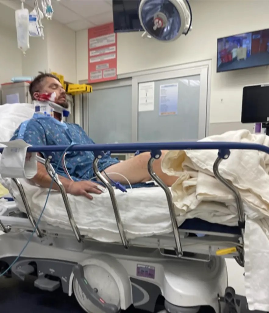 Από την έκρηξη, ο βετεράνος είχε κάταγμα κρανίου, αιμορραγία εγκεφάλου, σπασμένη γνάθο, εγκαύματα τρίτου βαθμού τουλάχιστον στο 10% του σώματός του, κοψίματα στο πρόσωπο και στο στήθος του. Επίσης πολλά θραύσματα είναι ενσωματωμένα στο σώμα του.