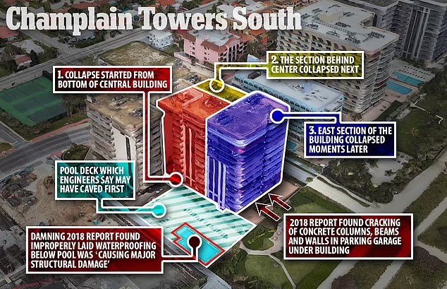 Την περασμένη Τρίτη, ένας μηχανικός που διερευνά τα αίτια της φονικής κατάρρευσης της πολυκατοικίας, δήλωσε ότι είναι πολύ πιθανόν να υποχώρησε πρώτα η πισίνα από τους τεράστιους όγκους νερού που βρισκόταν στο σημείο, με αποτέλεσμα να συμπαρασύρει ολόκληρο το κτίριο.