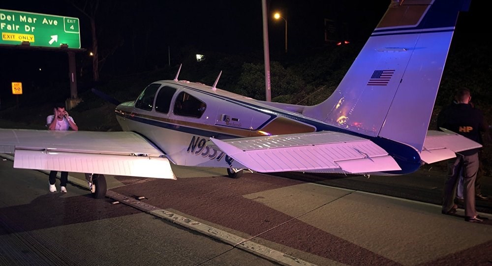 Ο 24χρονος πιλότος που αντιμετώπιζε πρόβλημα με τον κινητήρα κατάφερε να προσγειώσει με ασφάλεια το μικρό αεροπλάνο στον αυτοκινητόδρομο 55 της Orange County. Ο πιλότος Izzy Slod και ο συνεπιβάτης του Daniel Gross πετούσαν από το Σαν Ντιέγκο προς το Van Nuys, όταν το αεροπλάνο παρουσίασε το πρόβλημα και ο κινητήρας σταμάτησε να δουλεύει. Ο πιλότος σε συνεννόηση με τους ελεγκτές εναέριας κυκλοφορίας, κατάφερε να αποφύγει την κίνηση και να προσγειωθεί χωρίς να προκαλέσει περαιτέρω προβλήματα.