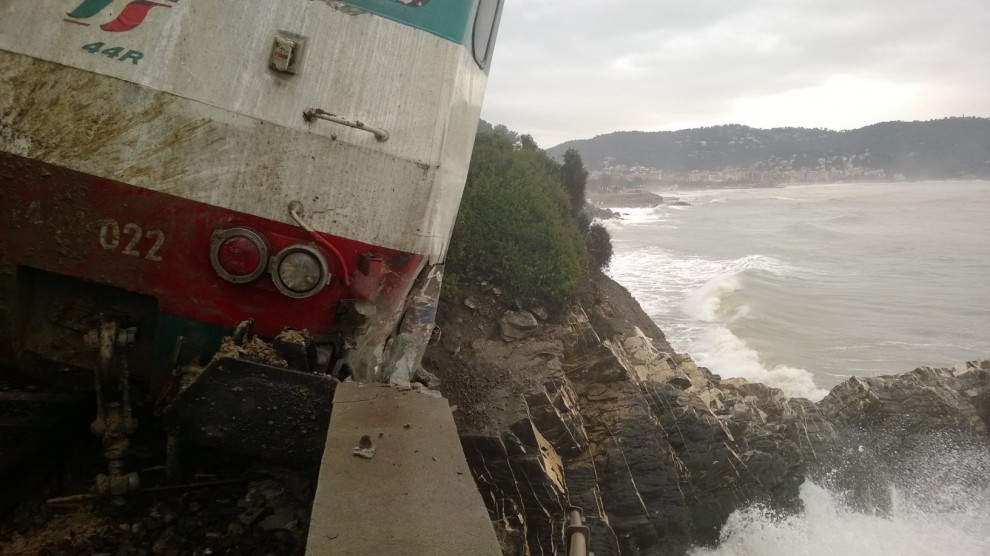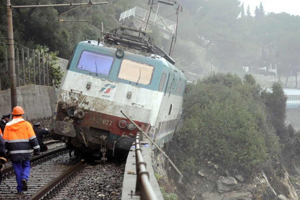 Τυχεροί μέσα στην ατυχία τους ήταν οι επιβαίνοντες της αμαξοστοιχίας της γραμμής Intercity από το Μιλάνο με προορισμό την περιοχή Βεντιμίλια αφού όταν εκτροχιάστηκε σαν από θαύμα αντί να πέσει στον γκρεμό, στηρίχτηκε σε ένα βράχο κι έμεινε να αιωρείται στο κενό.