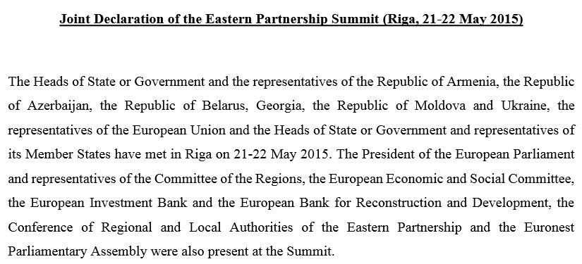 Τα μέλη της Συνόδου επαναβεβαιώνουν το στόχο της Ανατολικής Συνεργασίας να αναπτύξει ενισχυμένες, διαφοροποιημένες σχέσεις μεταξύ της ΕΕ και των έξι κυρίαρχων κρατών και ανεξάρτητων εταίρων της. Το εύρος και το βάθος της συνεργασίας καθορίζονται από τις φιλοδοξίες και ανάγκες της ΕΕ και των εταίρων της, αλλά και από το ρυθμό των μεταρρυθμίσεων.