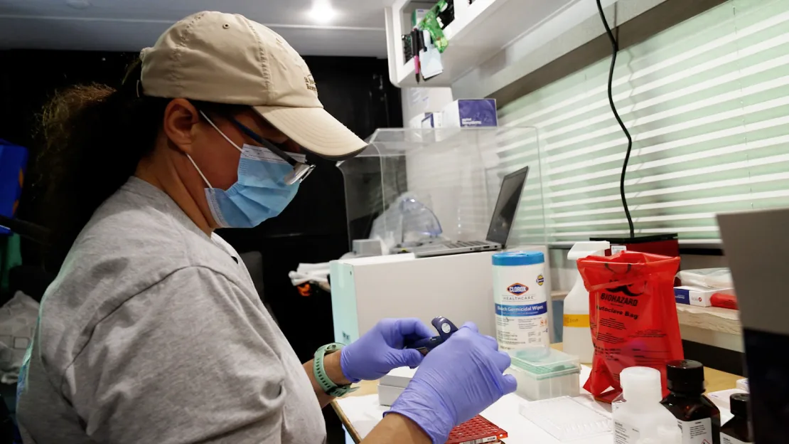 Η Κέρτσερ, διευθύντρια των εργαστηριακών επιχειρήσεων στο St. Jude, μετέτρεψε ένα τυπικό τροχόσπιτο σε κινητό εργαστήριο, το οποίο ήταν παρκαρισμένο ανάμεσα σε άλλους κατασκηνωτές. Φέτος, το δοκίμαζε στο πεδίο για να δει αν θα μπορούσε να επιταχύνει τη δουλειά της ομάδας.
