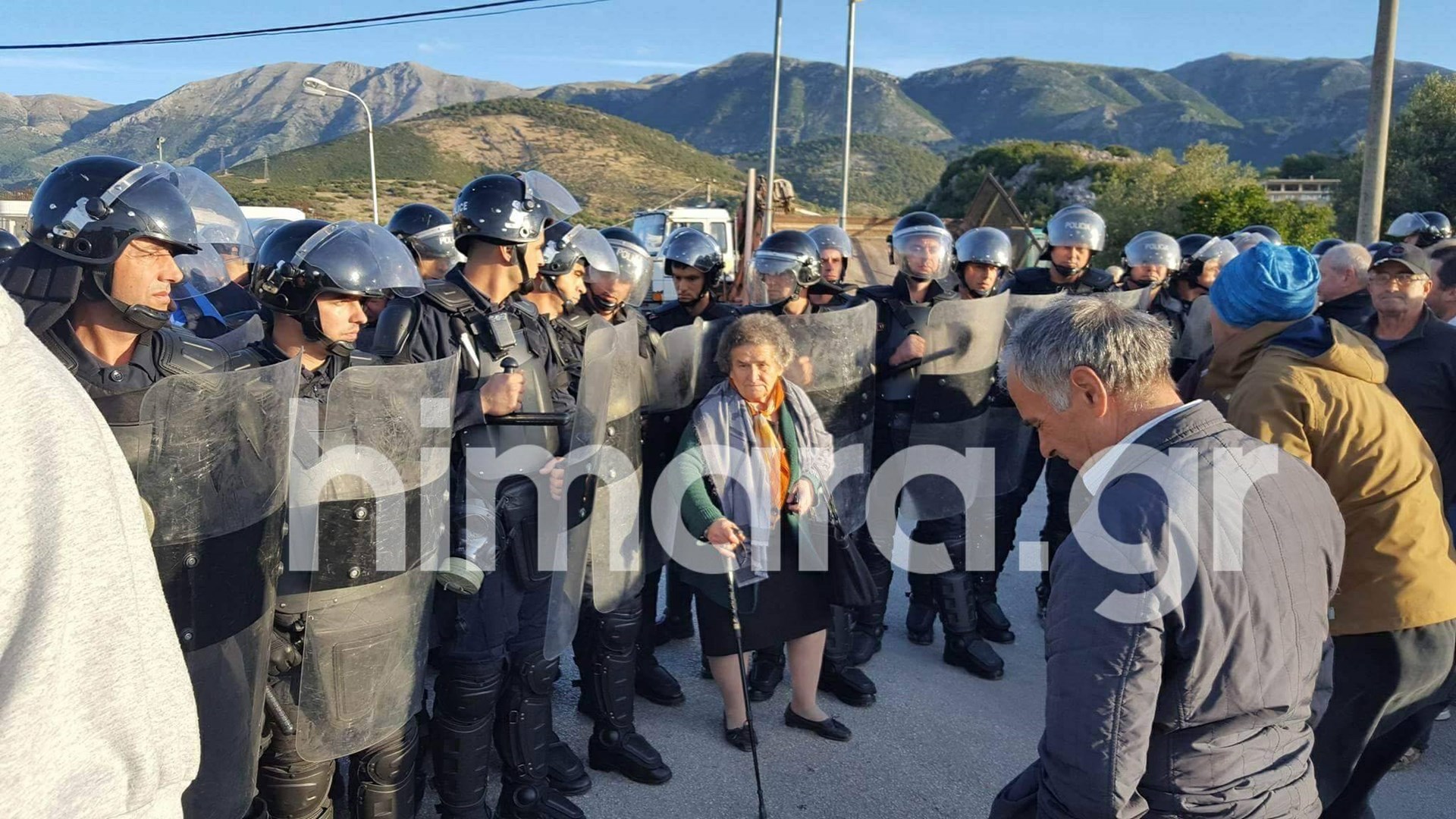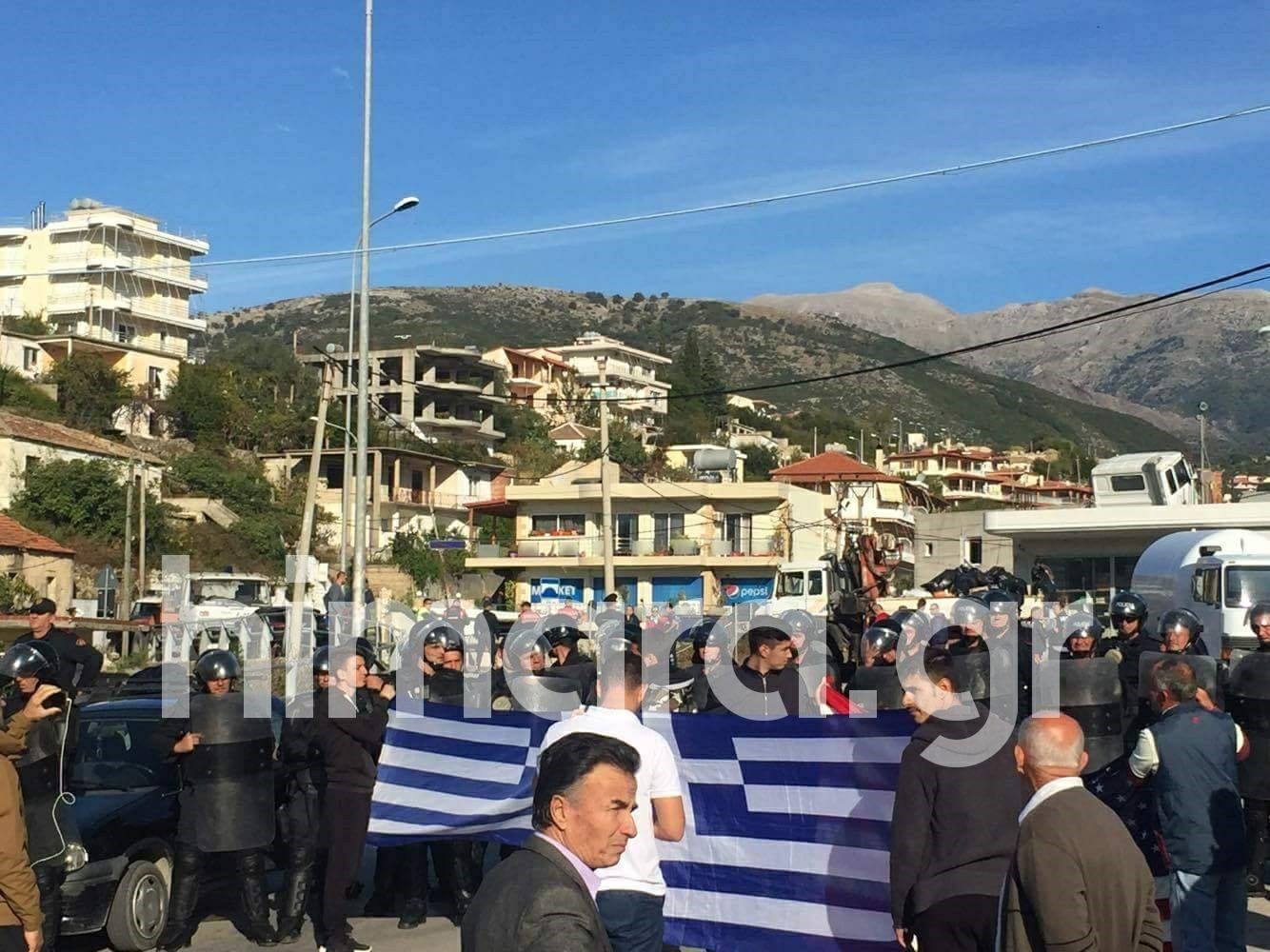 Οι κάτοικοι της Χειμάρρας αμύνονται των αλβανικών αστυνομικών δυνάμεων με τον Εθνικό Ύμνο, προσθέτει το himara.gr.
