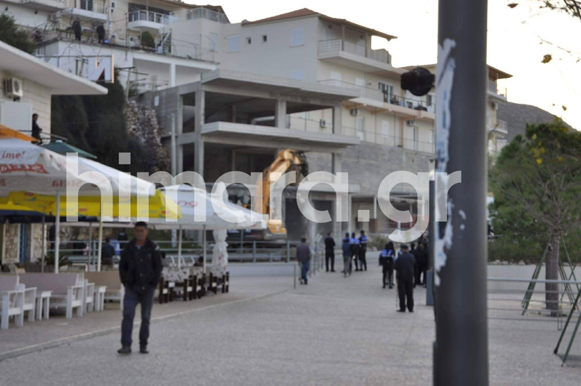 Από τις πρώτες πρωινές ώρες η Χειμάρρα έχει αποκλειστεί από πολυάριθμες αστυνομικές δυνάμεις της αλβανικής αστυνομίας και έχουν απαγορεύσει την κυκλοφορία στα σημεία όπου πραγματοποιούνται οι κατεδαφίσεις.