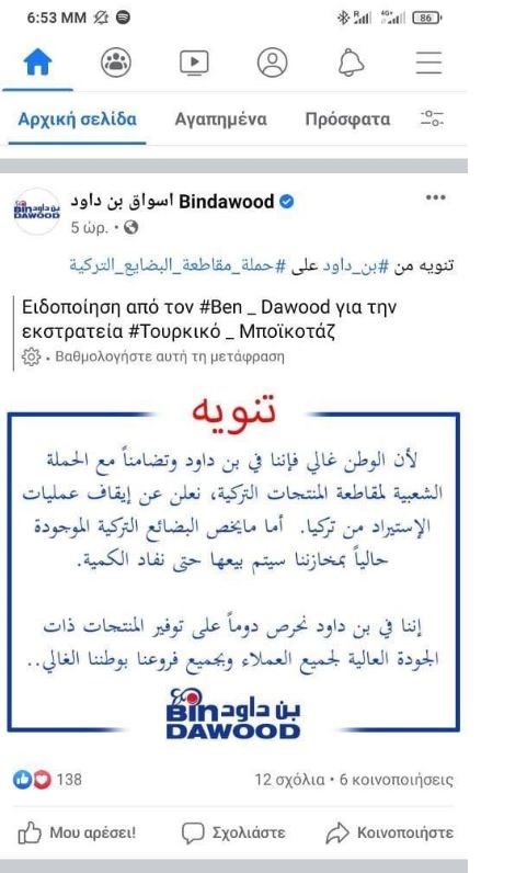 «Boycott Turkey». Όλο και μεγαλύτερες διαστάσεις λαμβάνει το κίνημα μποϊκοτάζ των τουρκικών προϊόντων σε Σαουδική Αραβία και άλλες χώρες του αραβικού κόσμου. Οι προκλήσεις του Τούρκου Προέδρου, Ρετζέπ Ταγίπ Ερντογάν και εμπρηστικές δηλώσεις του, όπως εκείνη πρόσφατα, ότι «οι Αραβικές χώρες του Κόλπου δεν θα υπάρχουν για πολύ, αλλά η Τουρκία πάντα θα είναι ισχυρή» ήταν η κορωνίδα για να ανοίξει ο ασκός του Αιόλου. Σύμφωνα με το greekcitytimes.com, η δήλωση Ερντογάν έκανε τον γύρο του διαδικτύου και των αραβικών ΜΜΕ με τα καλέσματα για μποϊκοτάζ των τουρκικών προϊόντων να ξεκινούν από Σαουδάραβες επιχειρηματίες και δημοσιογράφους. Για πολλές ημέρες, τα hashtags που καλούσαν τους κατοίκους και όλους όσοι διαμένουν στη χώρα να μην προτιμούν τα τουρκικά προϊόντα ήταν πρώτα στο Twitter, όπου οι αναρτήσεις εναντίον της Τουρκίας και του Ερντογάν ήταν πάμπολλες.