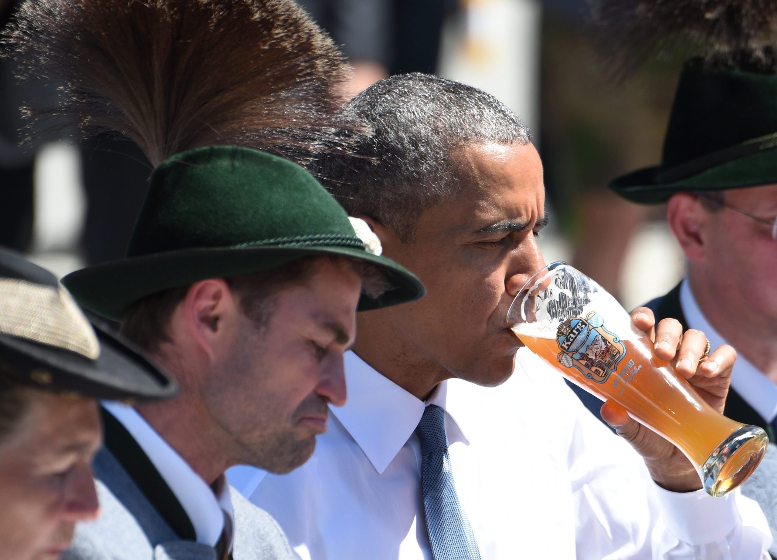 Τον Μπάρακ Ομπάμα υποδέχτηκε σήμερα με μπύρες και λουκάνικα η Άνγκελα Μέρκελ.