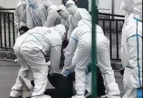Σε ένα περιστατικό που μεταδόθηκε απευθείας στην κινεζική πλατφόρμα ανταλλαγής μηνυμάτων WeChat φαίνονται περίπου 30 άνθρωποι που φορούν προστατευτικές στολές με τη λέξη «αστυνομία» στην πλάτη τους να συγκρούονται με άλλους ανθρώπους έξω από ένα συγκρότημα κατοικιών και να συλλαμβάνουν τουλάχιστον έναν, ενώ η γυναίκα που μαγνητοσκοπεί τη σκηνή ακούγεται να κλαίει.