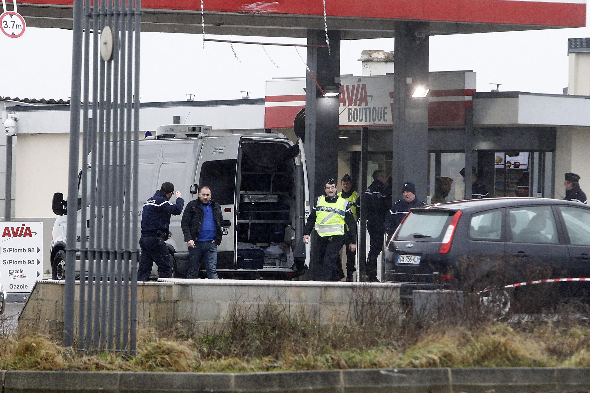 Το μεσημέρι, αυτό το πρατήριο βενζίνης, το οποίο βρίσκεται σε εξοχική τοποθεσία, στην άκρη ενός δρόμου με τέσσερις λωρίδες, είχε περικυκλωθεί από τις δυνάμεις της τάξης, διαπίστωσε δημοσιογράφος του Γαλλικού Πρακτορείου. Πολλοί χωροφύλακες με στολή ήταν ανεπτυγμένοι μπροστά από το πρατήριο και κρατούσαν τους δημοσιογράφους σε απόσταση.