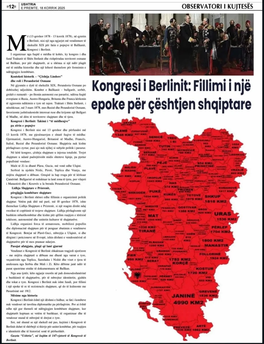 Ερωτήματα προκαλεί ένα άρθρο του επίσημου περιοδικού του Υπουργείου Άμυνας της Αλβανίας με αφορμή τα 147 χρόνια από το Συνέδριο του Βερολίνου.