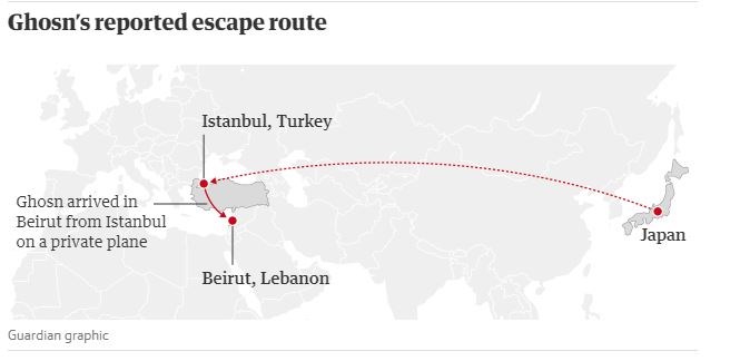 Με κινηματογραφικό τρόπο διέφυγε στον Λίβανο διαμέσου Κωνσταντινούπολης από την Ιαπωνία ο Κάρλος Γκοσν, πρώην διευθύνων σύμβουλος της Nissan-Renault, ο οποίος είχε απαγόρευση εξόδου από την Ιαπωνία μετά τις κατηγορίες που του απαγγέλθηκαν για σοβαρά οικονομικά αδικήματα.