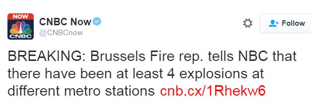 CNBC: Τουλάχιστον 4 εκρήξεις σε 4 διαφορετικούς σταθμούς μετρό – ΤΩΡΑ Enikos Newsroom 10:47, Τρίτη 22 Μαρτίου 2016 διεθνή Όπως αναφέρει το CNBC, πηγές κάνουν λόγο για 4 εκρήξεις σε 4 διαφορετικούς σταθμούς του μετρό στις Βρυξέλλες. ΒΡΥΞΕΛΛΕΣ ΕΚΡΗΞΕΙΣ ΣΤΑΘΜΟΙ ΜΕΤΡΟ Μοιράσου το: σχολίασε κι εσύ (0 σχόλια) Ακολουθήστε το enikos.gr στο Google News και μάθετε πρώτοι όλες τις ειδήσεις Δείτε όλες τις τελευταίες ειδήσεις από την Ελλάδα και τον Κόσμο στο enikos.gr Ειδήσεις Ροή Ειδήσεων 51 λεπτά πριν Βουλή: Κατατέθηκε το νομοσχέδιο για την αναδιάρθρωση των Ενόπλων Δυνάμεων – Όλα όσα προβλέπει 15 λεπτά πριν Παύλος Μαρινάκης: Στις 15:00 οι ανακοινώσεις Τσιάρα για τα αιτήματα των αγροτών – «Δεν γίνεται διάλογος με ταχυδρομικά περιστέρια» 2 ώρες πριν Σίδνεϊ: Τα ονόματα των θυμάτων από την τρομοκρατική επίθεση – Η 10χρονη Ματίλντα και ο επιζών του Ολοκαυτώματος που έσωσε τη γυναίκα του 3 ώρες πριν Η διαδρομή του σκάφους με την τεράστια ποσότητα κοκαΐνης που κατασχέθηκε στο λιμάνι του Πειραιά – Συνελήφθη και γνωστός «βαρώνος» 3 ώρες πριν Δείτε LIVE το συνέδριο «Ελληνικός Τουρισμός, Μια Εθνική Υπόθεση!» 2 ώρες πριν Μακροζωία: 55χρονος που ισχυρίζεται ότι βιολογικά είναι 20 ετών μοιράζεται μια απλή συμβουλή για υγιή εγκέφαλο 4 ώρες πριν Τα 3 ζώδια που μπαίνουν σε μια νέα δυναμική εποχή – «Είστε έτοιμοι για όλα» 3 ώρες πριν Οι 8 φράσεις που δίνουν αμέσως την εντύπωση πως είστε δύσκολος άνθρωπος 5 ώρες πριν Κληρονόμησε 2,8 εκατ. ευρώ και φοβάται ότι οι άνδρες θα την πλησιάζουν για τα λεφτά – «Μήπως καλύτερα να το κρατήσω μυστικό;» 28 δευτερόλεπτα πριν Μητσοτάκης: Στρατηγική προτεραιότητα για την Ελλάδα η ένταξη της Μολδαβίας στην ΕΕ 5 λεπτά πριν Εισαγγελέας στη δίκη της Χρυσής Αυγής: Οι επιθέσεις σε μετανάστες δεν ήταν τυχαία περιστατικά – Βασίζονταν στο μίσος απέναντι σε όσους χαρακτήριζαν «υπανθρώπους» 8 λεπτά πριν Κρεμλίνο: Η μη ένταξη της Ουκρανίας στο ΝΑΤΟ αποτελεί έναν από τους «ακρογωνιαίους λίθους» των συνομιλιών 15 λεπτά πριν Παύλος Μαρινάκης: Στις 15:00 οι ανακοινώσεις Τσιάρα για τα αιτήματα των αγροτών – «Δεν γίνεται διάλογος με ταχυδρομικά περιστέρια» 20 λεπτά πριν Συνέδριο «Ελληνικός Τουρισμός 2025, Μια εθνική υπόθεση!» – Πώς χτίζεται το τουριστικό προϊόν του αύριο ENIKOS NETWORK Νέα φάρμακα για την παχυσαρκία: Υπάρχει κίνδυνος καρκίνου; Αρτηριακή πλάκα: Ειδικός στη μακροζωία εξηγεί πώς μπορεί να αντιστραφεί μέσα σε 12 μήνες Συνολικά 150 μόνιμες προσλήψεις στην ΕΑΒ: Ποιοι μπορούν να υποβάλουν αίτηση και μέχρι πότε Δημόσιο: Έρχεται ρύθμιση-ανάσα για εκατομμύρια οφειλέτες Σύγχρονος Νοστράδαμος: Προειδοποιεί για «μεγάλο γεγονός» τους επόμενους μήνες που θα συγκλονίσει τη Βρετανία και τον κόσμο Τεστ παρατηρητικότητας: Μπορείτε να βρείτε τις 3 διαφορές στις εικόνες με έναν πιγκουίνο σε 14 δευτερόλεπτα περισσότερα 13:24 , Δευτέρα 15 Δεκεμβρίου 2025 Κρεμλίνο: Η μη ένταξη της Ουκρανίας στο ΝΑΤΟ αποτελεί έναν από τους «ακρογωνιαίους λίθους» των συνομιλιών Το Κρεμλίνο ανακοίνωσε σήμερα ότι η μη ένταξη της Ουκρανίας στο ΝΑΤΟ αποτελεί θεμελιώδες ζήτημ... 11:38 , Δευτέρα 15 Δεκεμβρίου 2025 Αυστραλία: 1 εκατ. δολάρια σε δωρεές για τον ήρωα που τραυματίστηκε αφοπλίζοντας τον έναν δράστη – «Πάω να πεθάνω…» Σε μια από τις πιο συγκλονιστικές στιγμές της φονικής, τρομοκρατικής επίθεσης στην παραλία Bon... 11:22 , Δευτέρα 15 Δεκεμβρίου 2025 Σίδνεϊ: Τα ονόματα των θυμάτων από την τρομοκρατική επίθεση – Η 10χρονη Ματίλντα και ο επιζώ