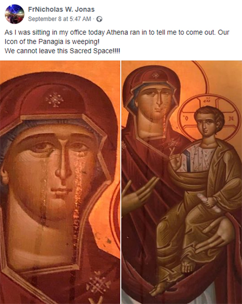 Και ο ιερέας της εκκλησίας ανέβασε φωτογραφίες της κλαίουσας Παναγίας στο Facebook, όπου τονίζει ότι, «δεν πρέπει να εγκαταλειφθεί αυτό το ιερό μέρος».