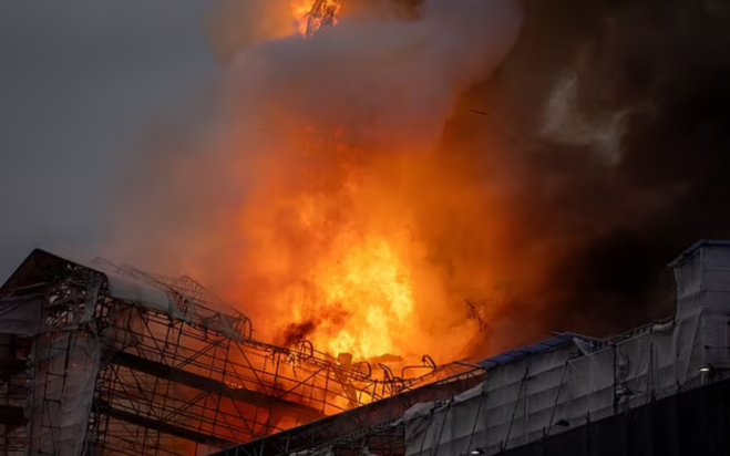 Η φωτιά, που ξεκίνησε από άγνωστη μέχρι στιγμής αιτία, κατέστρεψε το κτίριο, το οποίο οι Δανοί χαρακτηρίζουν ως τη δική τους «Παναγία των Παρισίων», με την Daily Mail να φέρνει στη δημοσιότητα νέα συγκλονιστικά βίντεο.