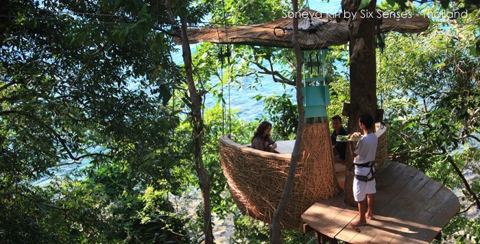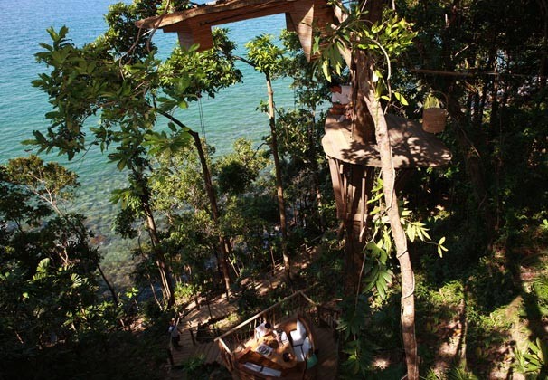 Ένα ξεχωριστό εστιατόριο, μέσα σε ένα ειδυλλιακό καταπράσινο περιβάλλον με πυκνή βλάστηση και θέα το απέραντο γαλάζιο, βρίσκεται στην Ταϊλάνδη.Οι επισκέπτες σκαρφαλώνουν πέντε μέτρα πάνω από το έδαφος, και κάθονται ανάμεσα στα φυλλώματα των δέντρων, όπου πάνω στα κλαδιά, έχουν τοποθετηθεί ειδικά ψάθινα καλάθια, αντί για τραπέζια.Οι σερβιτόροι μετακινούνται σαν ακροβάτες από το ένα δέντρο στο άλλο, μέσω ενός παράδοξου μονοπατιού με σχοινιά και σερβίρουν όλων των ειδών τα εξωτικά πιάτα της Ταϊλάνδης,”Το μόνο που χρειάζεται για να έρθεις κάποιος στο εστιατόριό μας, είναι να καταπολεμήσει την υψοφοβία του”, λέει ο ιδιοκτήτης.