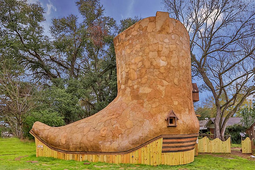 Αυτό το «παπούτσι» είναι τόσο μεγάλο που μπορεί κανείς να ζήσει μέσα σ’ αυτό.Ο Νταν Φίλιπς, Τεξανός αρχιτέκτονας, σχεδίασε και έχτισε στη Χάντσβιλ μια κατοικία που ακούει στο όνομα «The Cowboy Boot House». Η μπότα-σπίτι έχει ως προέκταση ένα μπανγκαλόου, πράγμα το οποίο σημαίνει 66 τετραγωνικά, διαθέσιμα. Δύο υπνοδωμάτια, γρανίτινο μωσαϊκό στο πάτωμα (από τον ίδιο τον Νταν Φίλιπς), σπειροειδής σκάλα που οδηγεί στην οροφή της «μπότας».