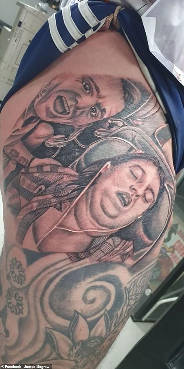 Ο 40χρονος James McGraw από το Πόρτσμουθ πήρε την απόφαση να κάνει το συγκεκριμένο τατουάζ, στο οποίο είναι “ζωγραφισμένη” η σύζυγός του, Kelly, σε μία καθόλου κολακευτική για την ίδια πόζα, καθώς ροχαλίζει για να την εκδικηθεί επειδή δεν τον κούρεψε καλά.