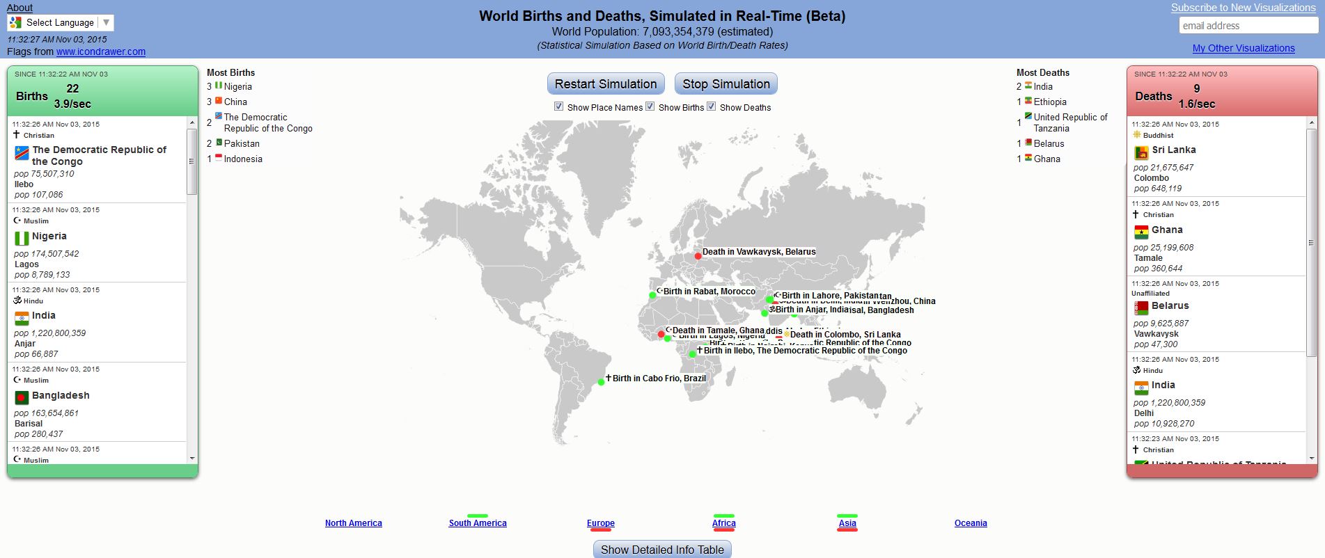 Μία από αυτές είναι η ιστοσελίδα worldbirthsanddeaths.com, η οποία, όπως αναφέρει, μετράει σε πραγματικό χρόνο τις γεννήσεις και τους θανάτους σε παγκόσμιο επίπεδο.