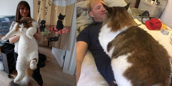 Πρόκειται για τον 4χρονο Σάμσον, ράτσας Maine Coon που έχει ύψος 1,20 μέτρα και ζυγίζει 13 ολόκληρα κιλά.