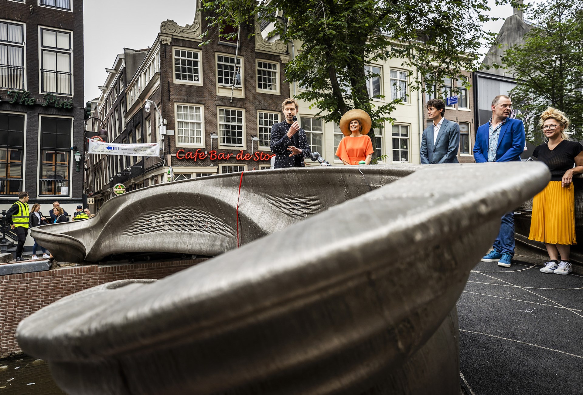 Η φουτουριστική γέφυρα που έχει βραβευθεί πολλές φορές, είναι σχεδιασμένη από τον Joris Laarman Lab και με τον Όμιλο Arup στον ρόλο του πρώτου μηχανικού. Μεταφέρθηκε στο σημείο με πλωτά μέσα διασχίζοντας τα κανάλια της ολλανδικής πρωτεύουσας και πλέον ενώνει τις δύο όχθες του καναλιού Oudezijds Achterburgwal.