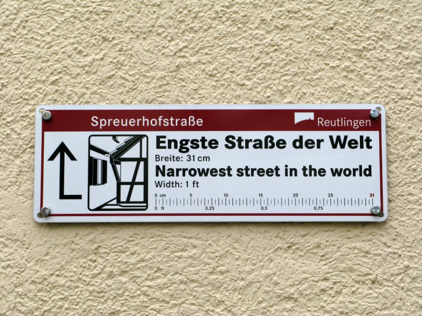 Το στενό αυτό πέρασμα βρίσκεται στην πόλη Reutlingen της Γερμανίας και έχει πλάτος μόλις 31 εκατοστά.Έχει γίνει πόλος έλξης τουριστών καθώς έχει καταχωρηθεί στο βιβλίο Γκίνες.