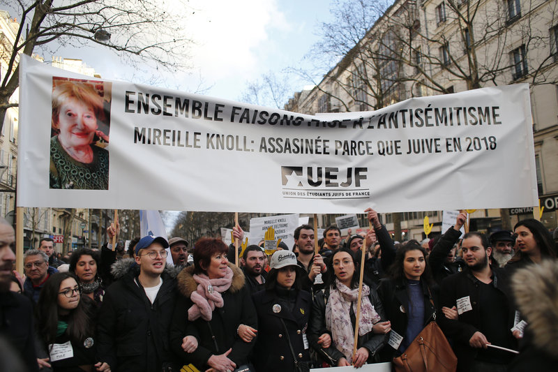 Δεκάδες χιλιάδες άνθρωποι, μεταξύ των οποίων υπουργοί, πολιτικοί, καλλιτέχνες, επιστήμονες, κ.α., διαδήλωσαν στο Παρίσι, στη μνήμη της Μιρέιγ Νολ, της ηλικιωμένης Εβραίας, η δολοφονία της οποίας αναζωπύρωσε την ανησυχία για την άνοδο του αντισημιτισμού στη Γαλλία.