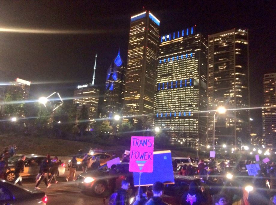 Στο κεντρικό Σικάγο, περίπου 1.800 διαδηλωτές συγκεντρώθηκαν έξω από το ξενοδοχείο Trump International Hotel, φωνάζοντας συνθήματα «Όχι στον Τραμπ»! «Όχι ρατσιστές στις ΗΠΑ».