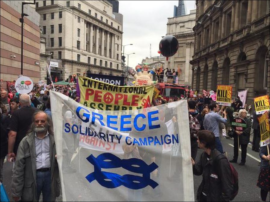 Μεγάλη διαδήλωση κατά της λιτότητας πραγματοποιείται αυτή την ώρα στο Λονδίνο.