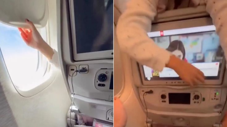 Στο βίντεο, που αναρτήθηκε στο X, εμφανίζεται ένας άνδρας επιβάτης να προσπαθεί να παρακολουθήσει την ταινία «Hocus Pocus 2» ενώ το παιδί, περίπου 4 ετών, προσπαθεί να σηκώσει το σκίαστρο του παραθύρου.