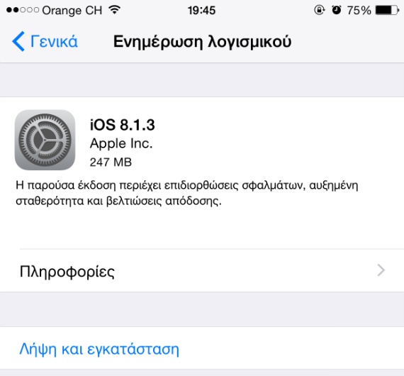 Η αρχική οθόνη για την αναβάθμιση σε iOS 8.1.3