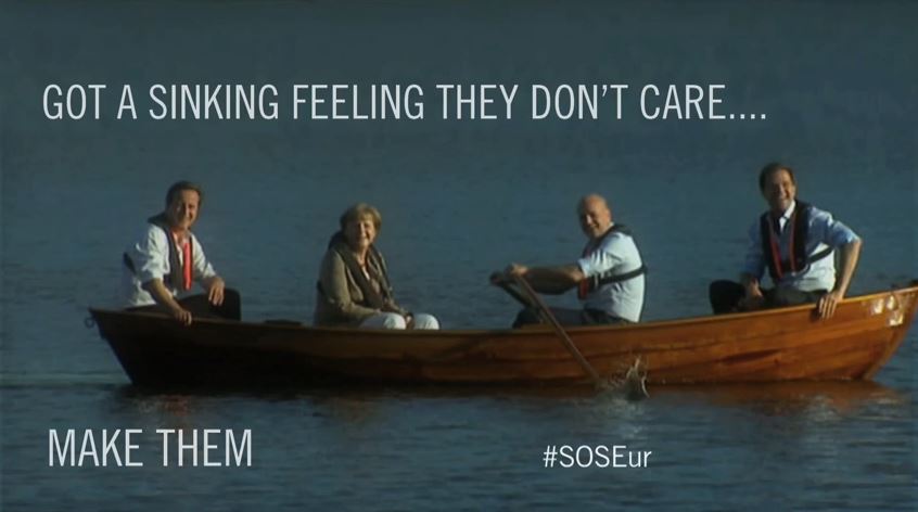 Το βίντεο με τίτλο «Μια αίσθηση ναυαγίου που δεν τους νοιάζει» είναι προϊόν μοντάζ και δείχνει την Καγκελάριο της Γερμανίας, Άνγκελα Μέρκελ, σε βαρκάδα με τον πρωθυπουργό της Βρετανίας Κάμερον Μέρκελ στα γαλήνια νερά μιας λίμνης, όταν στον αντίποδα κάνουν το γύρο του πλανήτη συγκλονιστικές εικόνες από μετανάστες να πνίγονται στα νερά της Μεσογείου που έχει μετατραπεί σε απέραντο νεκροταφείο.