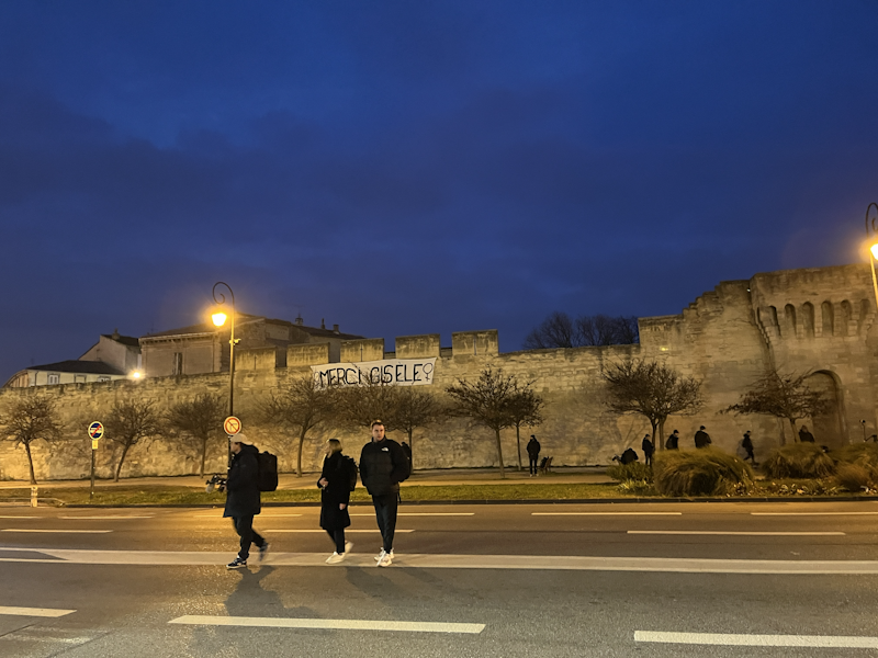 «Ευχαριστούμε Ζιζέλ» αναγράφεται σε πανό που τοποθετήθηκε σήμερα το πρωί έξω από το δικαστικό μέγαρο της Αβινιόν στην Γαλλία, πριν την ανακοίνωση της απόφασης για την ιστορική δίκη των βιασμών της Μαζάν, εκφράζοντας την ευγνωμοσύνη των γυναικών προς εκείνη που επιθυμούσε «να μεταφέρει τη ντροπή σε άλλον».