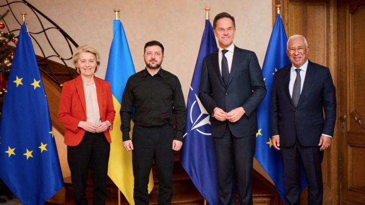 Με κοινή τους ανάρτηση στο Χ, η Πρόεδρος της Ευρωπαϊκής Επιτροπής Ούρσουλα φον ντερ Λάιεν και ο Πρόεδρος του Ευρωπαϊκού Συμβουλίου Αντόνιο Κόστα αναφέρθηκαν στη θετική και ουσιαστική συζήτηση που είχαν με τον Ουκρανό Πρόεδρο Βολοντίμιρ Ζελένσκι στις Βρυξέλλες. Στη συνάντηση συμμετείχε και ο Γενικός Γραμματέας του ΝΑΤΟ, Μαρκ Ρούτε, με το κύριο βάρος να πέφτει στην πορεία της Ουκρανίας προς την Ευρωπαϊκή Ένωση, στην ενίσχυση της ασφάλειάς της και στη χρηματοδοτική στήριξη προς το Κίεβο.
