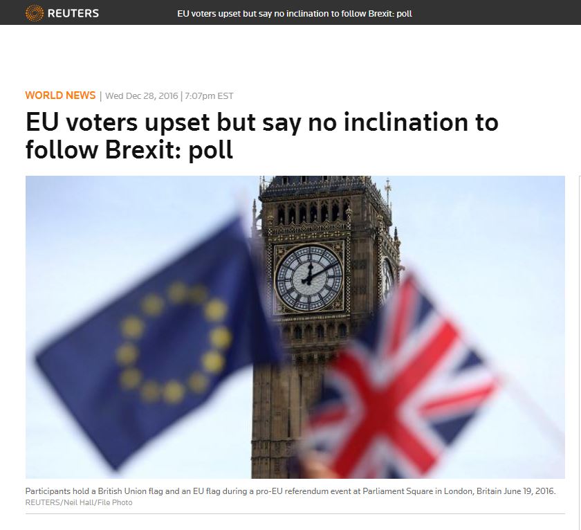 «Το 2016 τα θεμέλια της ΕΕ κλονίστηκαν» δήλωσε ο Johnny Heald, διευθυντής της ORB International, που διεξήγαγε τη δημοσκόπηση στη Βρετανία.