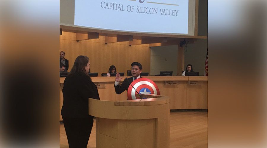 Ο ρεπουμπλικανός Lan Diep επέλεξε αυτόν τον διαφορετικό τρόπο να ορκιστεί, προκαλώντας χειροκροτήματα στους παρευρισκομένους στην τελετή ορκωμοσίας, αναφέρει το KNTV.