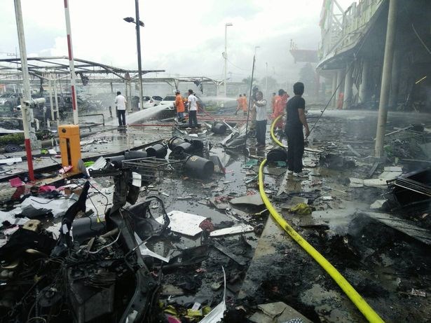 Οι φωτογραφίες που δημοσιεύθηκαν στα μέσα κοινωνικής δικτύωσης, δείχνουν εικόνες καταστροφής από τις εκρήξεις, με πυκνό καπνό να έχει καλύψει το χώρο και συντρίμμια να έχουν διασκορπιστεί γύρω από την είσοδο και τον χώρο στάθμευσης αυτοκινήτων.