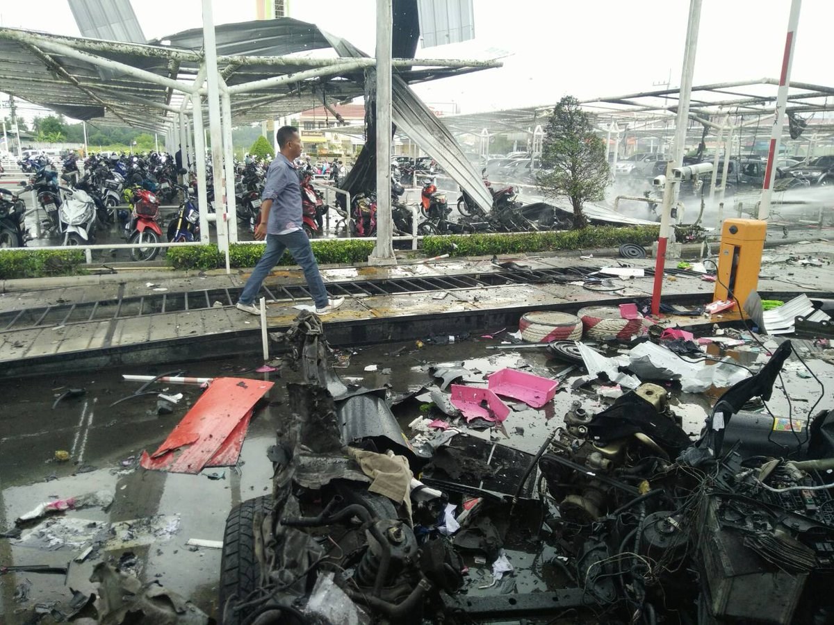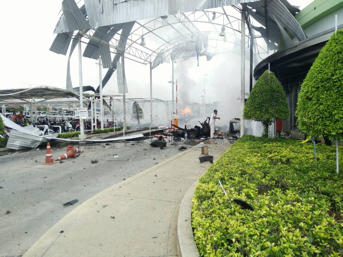Ένα παγιδευμένο όχημα εξερράγη μπροστά στην είσοδο του εμπορικού κέντρου στην περιοχή Pattani, η οποία είναι δημοφιλής τουριστικός προορισμός.